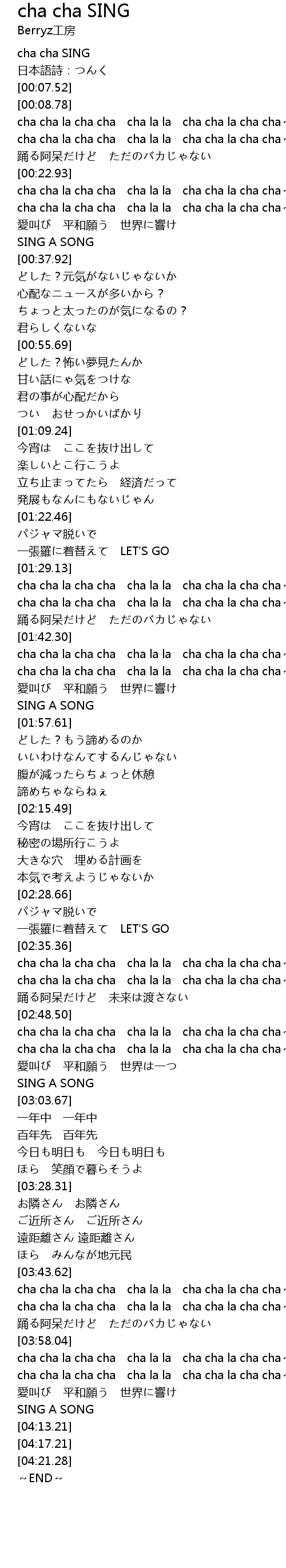 | [02:39.59] | cha cha la cha cha cha la la cha cha la cha cha |