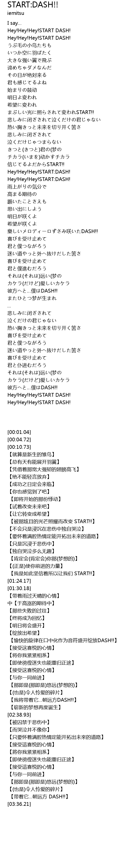 | [03:36.21] | Hey!Hey!Hey!START DASH! |