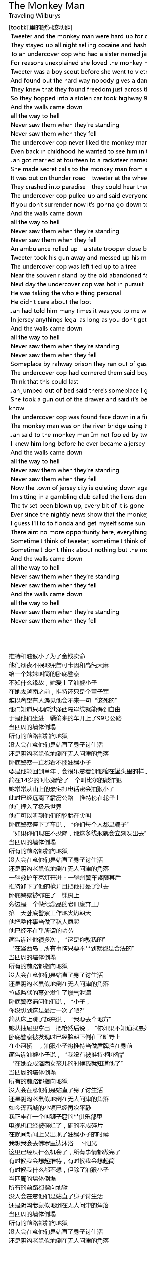 | [00:21.012] | For reasons unexplained she loved the monkey man |