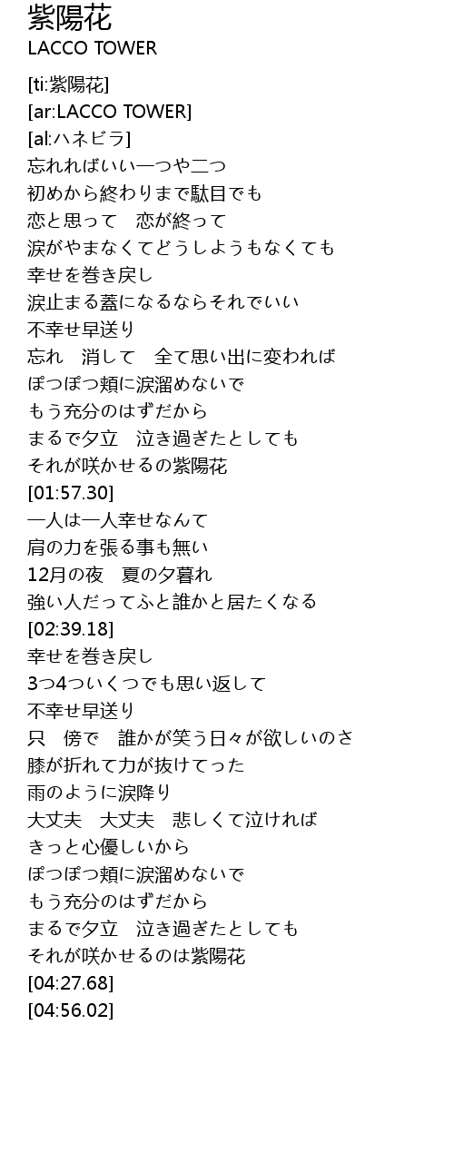 | [04:20.26] | それが咲かせるのは紫陽花 |