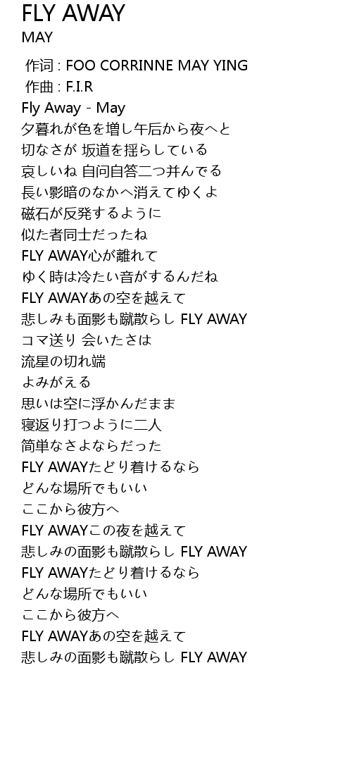 | [02:54.72] | FLY AWAY zhe |