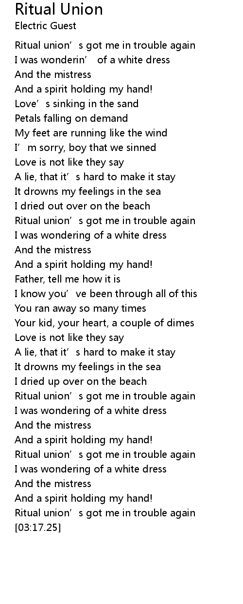 | [02:43.41] | Ritual union’s got me in trouble again |