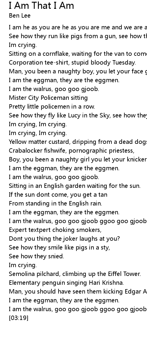 I am the walrus, goo goo gjoob ggoo goo gjoob. |