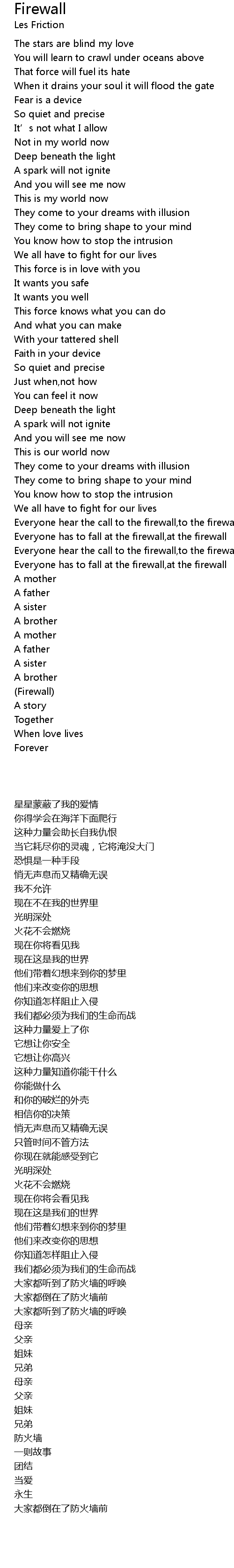 | [02:43.788] | Everyone has to fall at the firewall,at the firewall |