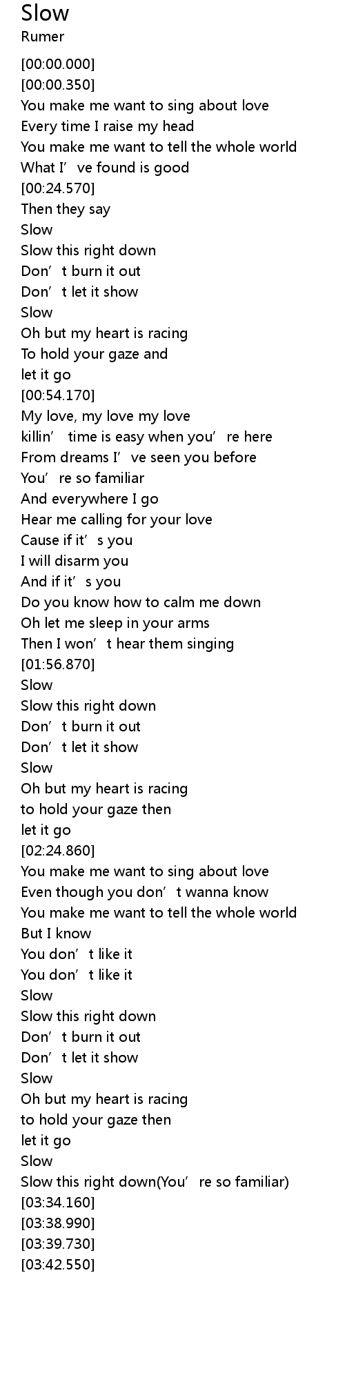 | [03:26.200] | Slow this right down(You’re so familiar) |