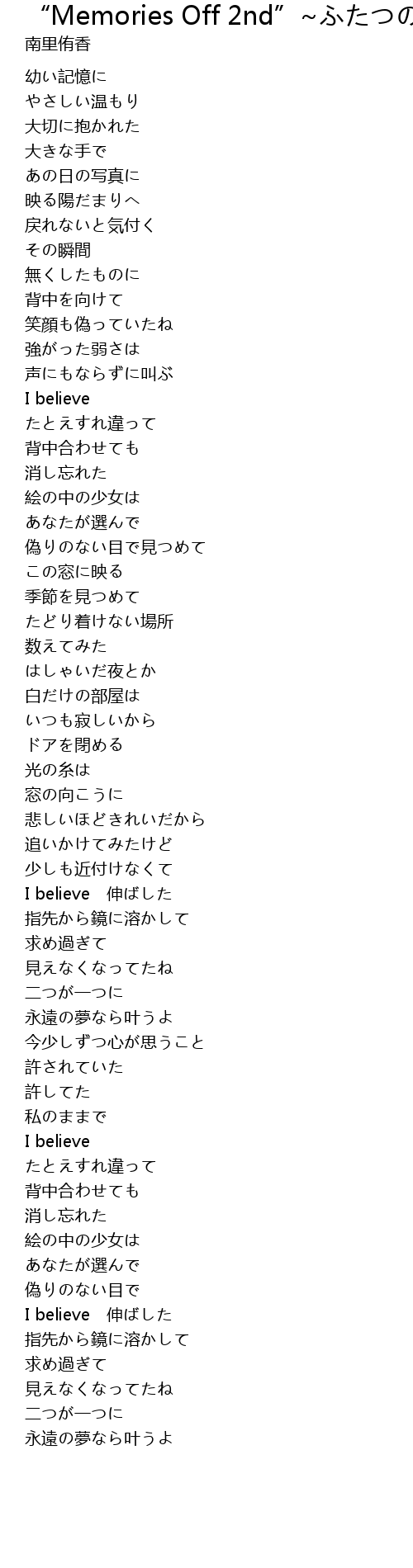 | Song | “Memories Off 2nd”~ふたつの心は |