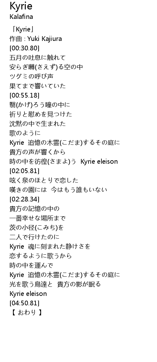 | [03:35.51] | Kyrie 魂に刻まれた静けさを |