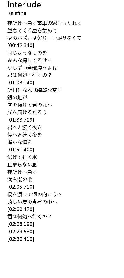 | [00:17.90] | 夜明けへ急ぐ電車の窓にもたれて |