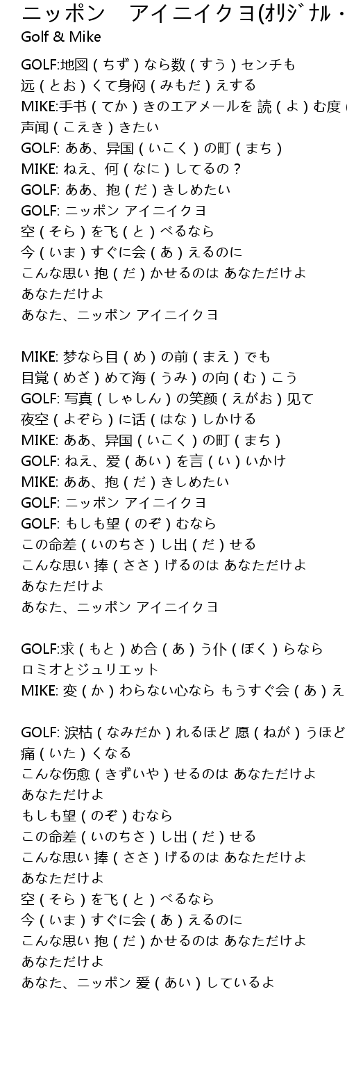 | GOLF: ニッポン アイニイクヨ | |