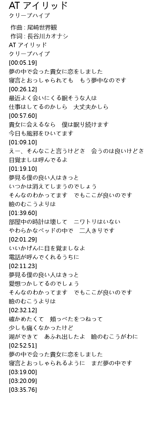 | [03:09.94] | 寝言とおっしゃられるように まだ夢の中です |