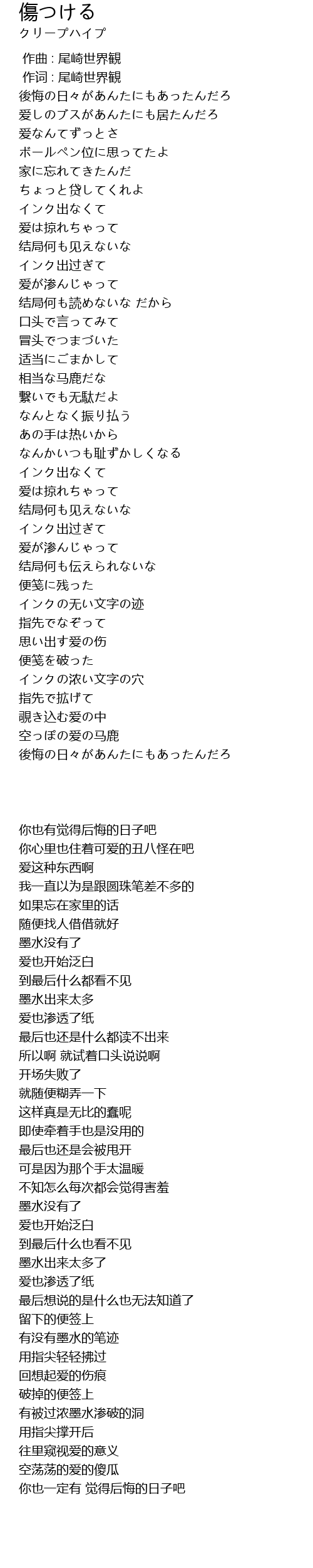 | [00:00.00] | 作曲 : 尾崎世界観 |