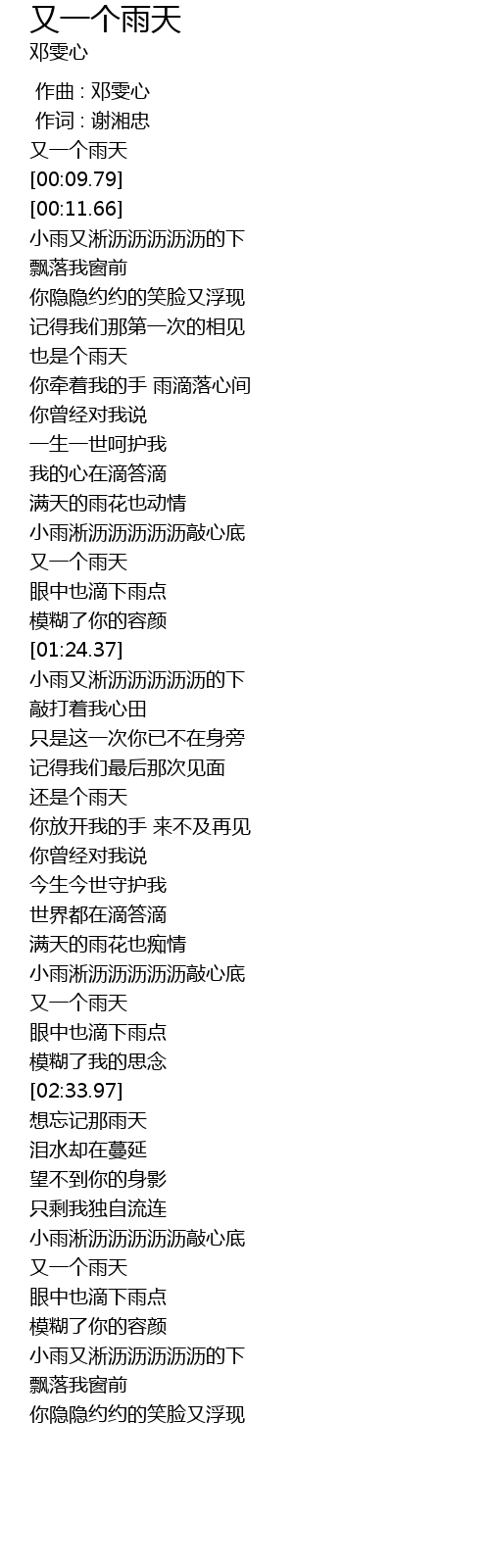 | [01:40.22] | 小雨又淅沥沥沥沥沥的下 |
