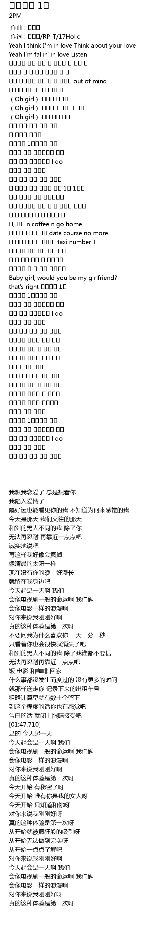 | [01:47.710] | Baby girl, would you be my girlfriend? |