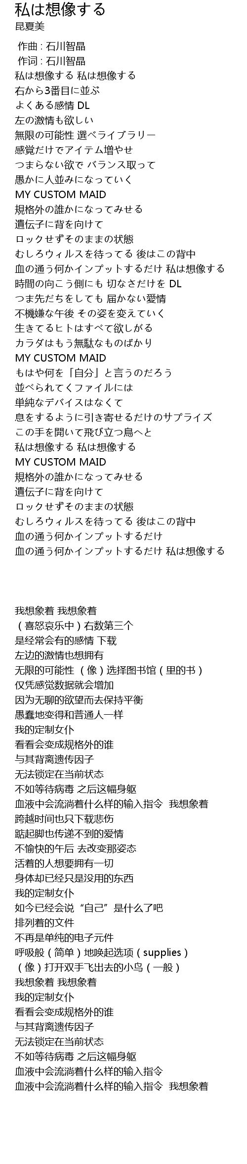 | [04:08.65] | 血の通う何かインプットするだけ 私は想像する |