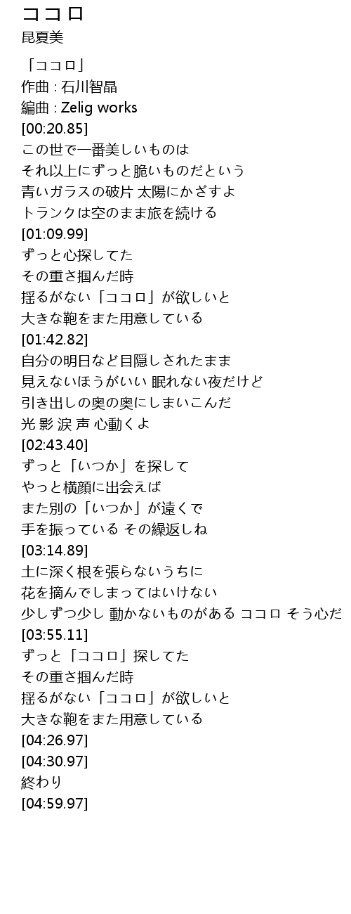 | [00:00.85] | 「ココロ」 |
