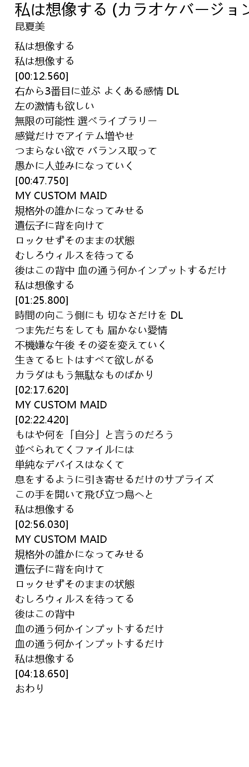 | [02:13.380] | カラダはもう無駄なものばかり |