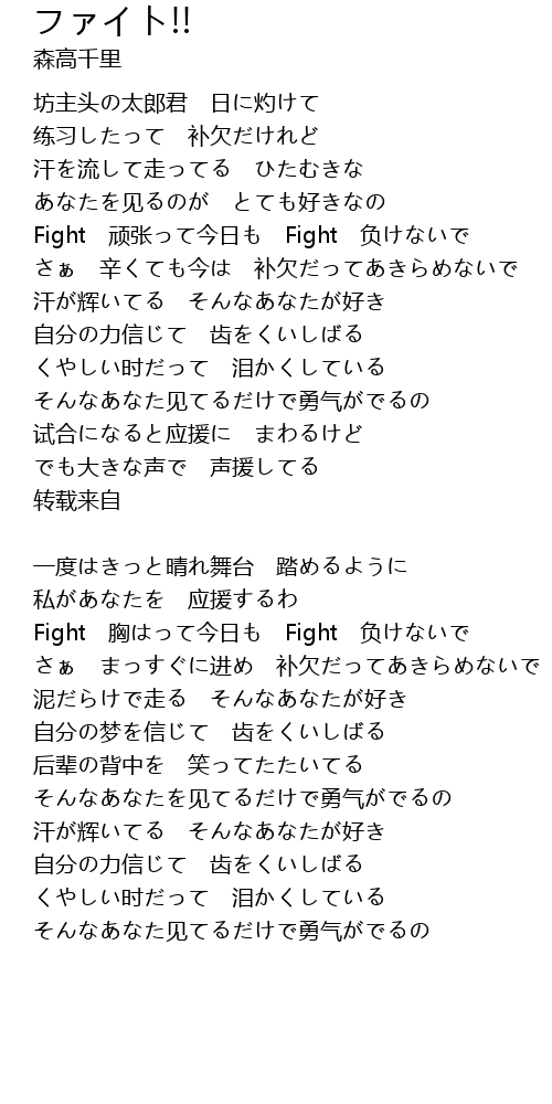 | Song | ファイト!! |