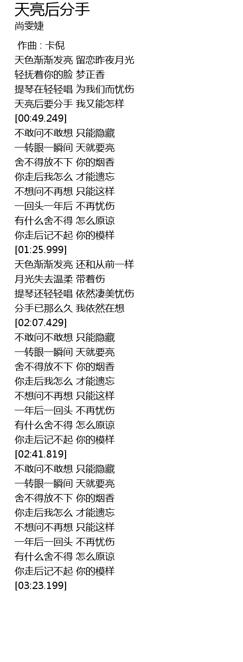 | [00:43.590] | 天亮后要分手 我又能怎样 |