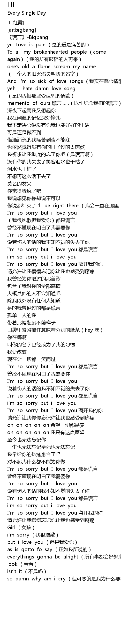 | [01:03.906] | I'm so sorry but i love you (我很抱歉但我爱你)都是谎言 |