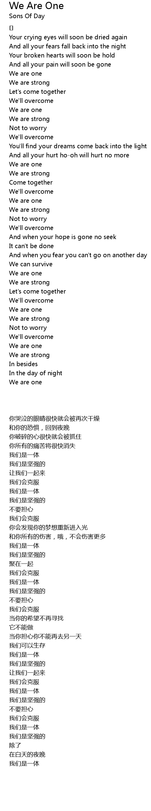 | [02:32.459] | We are one |