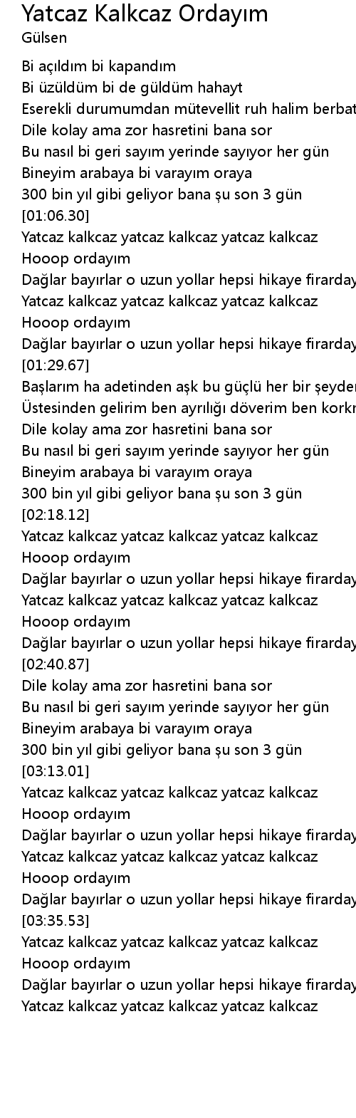 | [03:25.20] | Yatcaz kalkcaz yatcaz kalkcaz yatcaz kalkcaz |