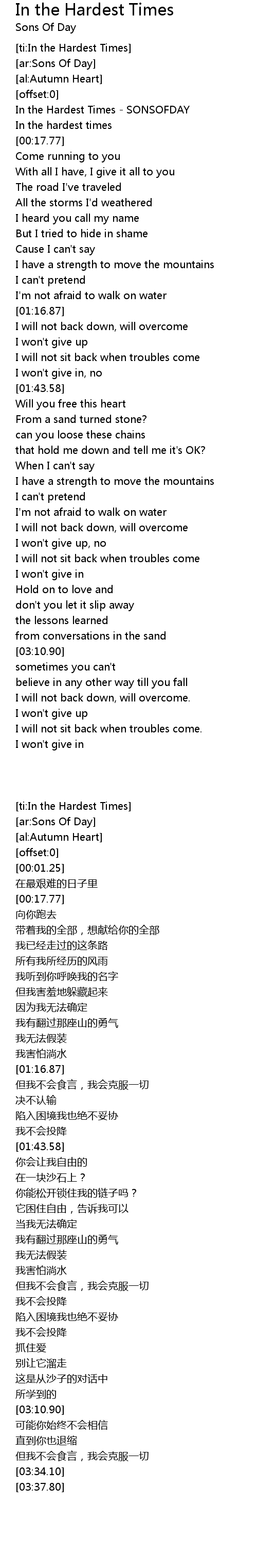 [ti:In the Hardest Times] |