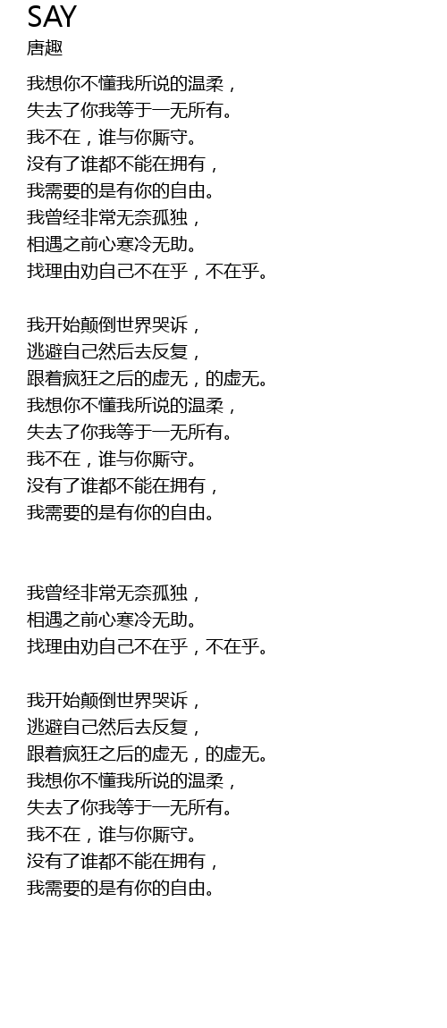 | wǒ xū yào de shì yǒu nǐ de zì yóu. | |