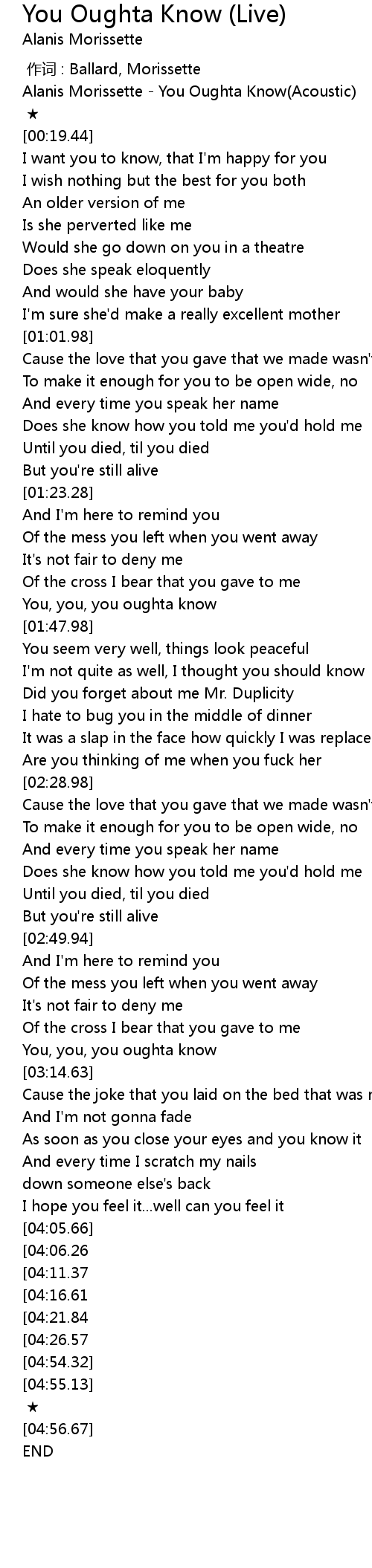 | [04:50.10][04:26.57] | You, you, you oughta know |