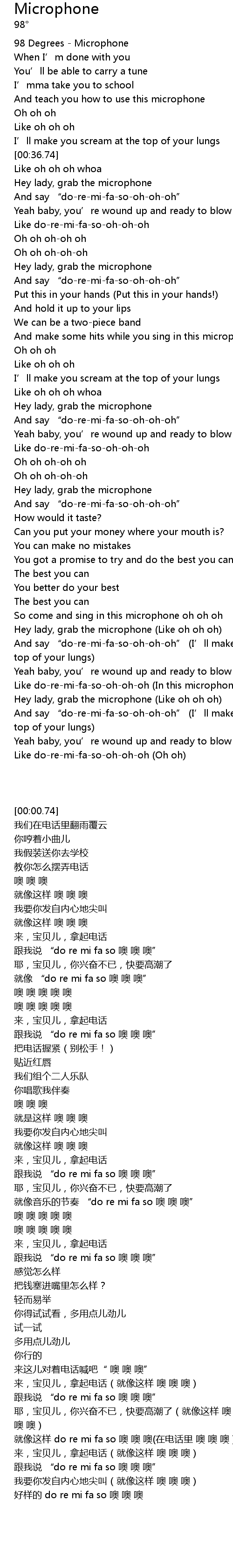 | [00:00.74] | 98 Degrees Microphone |