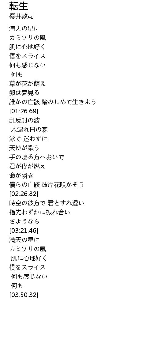| [01:11.60] | 誰かの亡骸 踏みしめて生きよう |