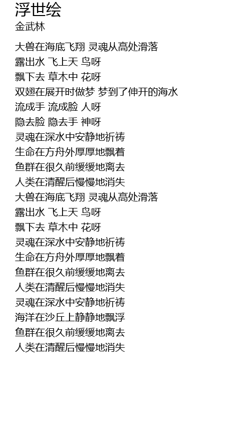 | [01:35.30] | 双翅在展开时做梦 梦到了伸开的海水 |