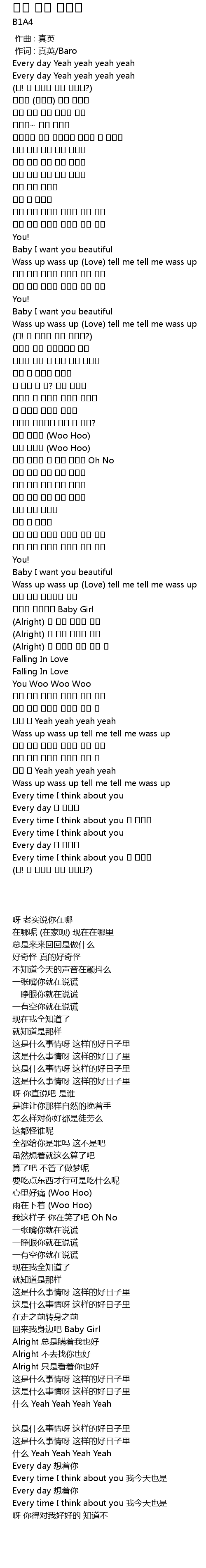 | [00:00.416] | 作词 : 真英/Baro |