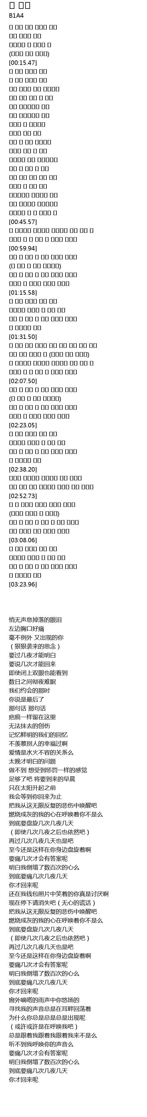 | [00:59.99] | 대체 몇 번을 몇 밤을 며칠을 맴돌아 |