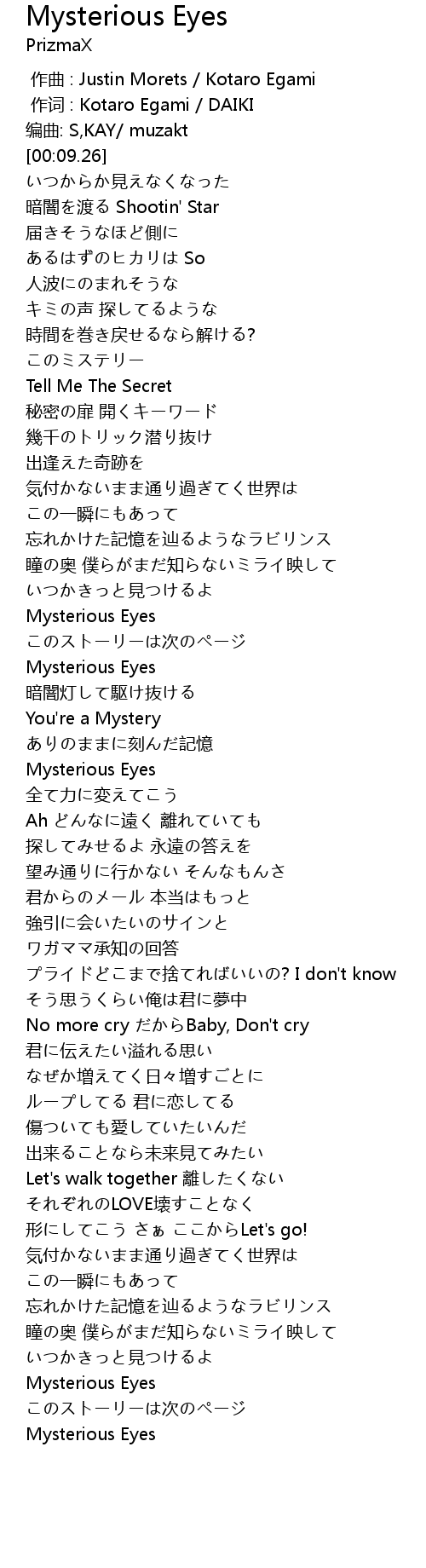 | [02:22.43] | No more cry だからBaby, Don't cry |