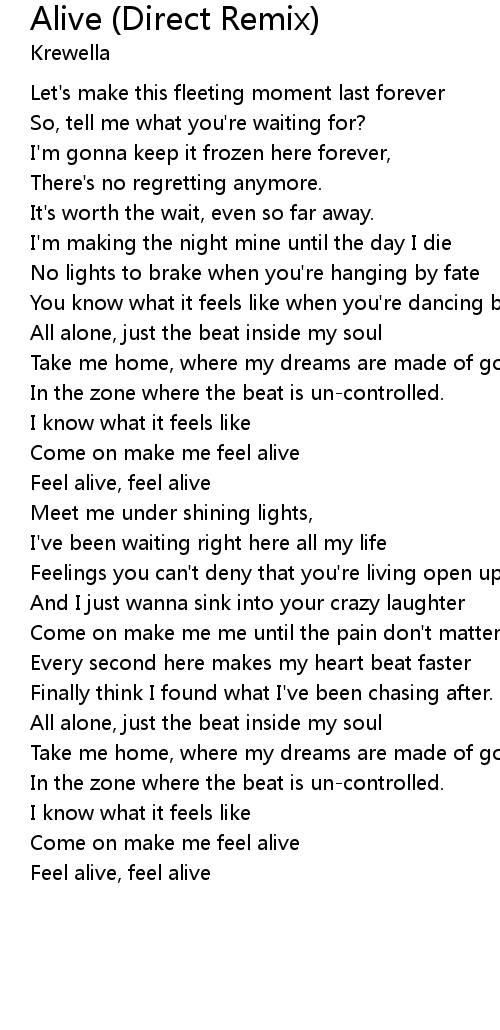 | [00:46.72] | Feel alive, feel alive |