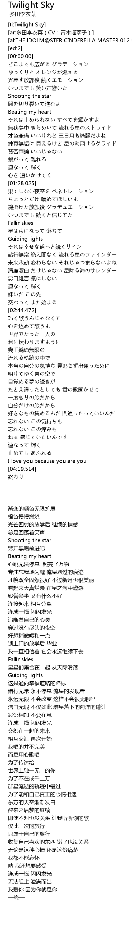 | [02:14.425] | 諸行無常 絶え間なく 流れる星のファインダー |
