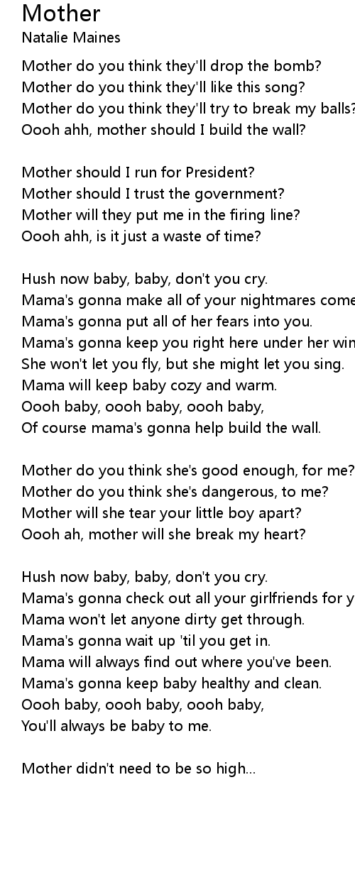 Mother do you think they'll like this song? |