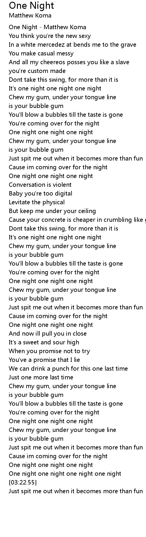 One Night Lyrics