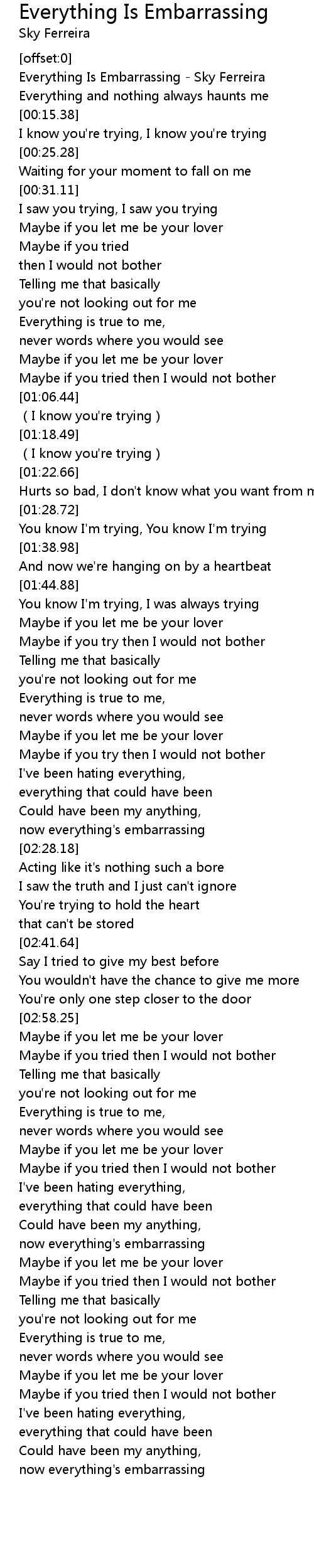 | [00:00.41] | Everything Is Embarrassing - Sky Ferreira |
