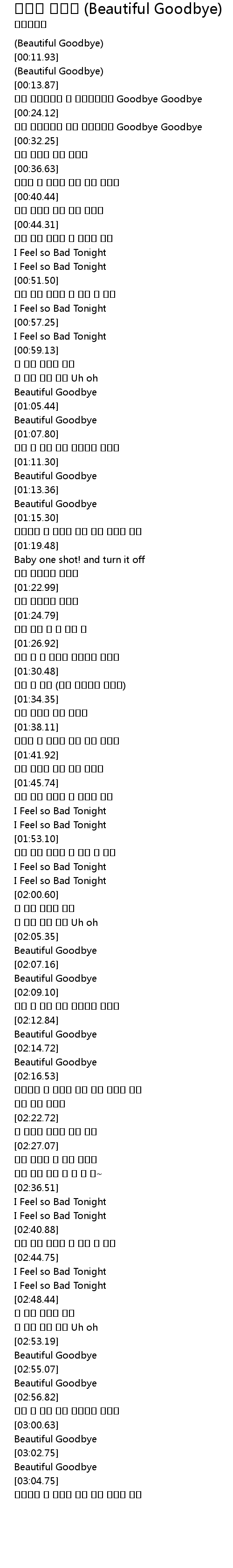 | [00:25.43] | 나를 쳐다보지마 너무 뻔뻔하잖아 Goodbye Goodbye |