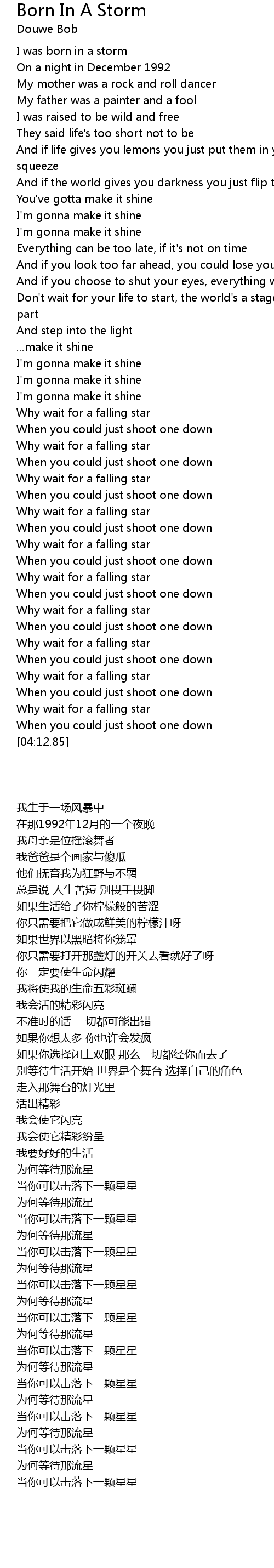 I was born in a storm |