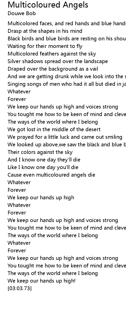 Cause even multicoloured angels die |