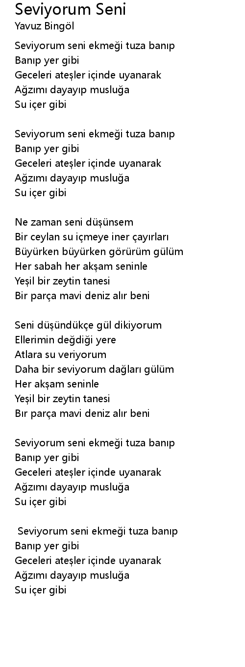 | Seviyorum seni ekmeği tuza banıp | |