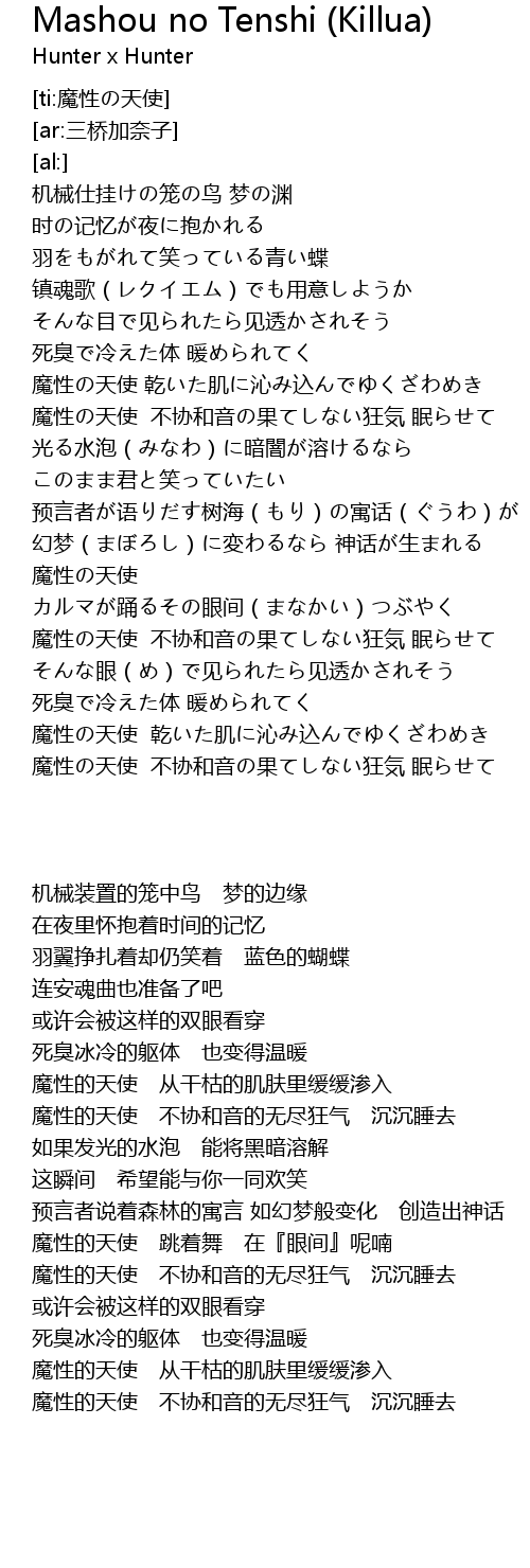 | [01:37.16] | 魔性の天使 不协和音の果てしない狂気 眠らせて |