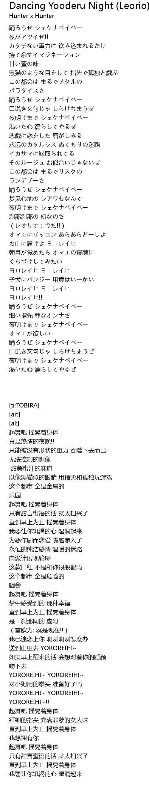 | [02:33.71] | ヨロレイヒ ヨロレイヒ |