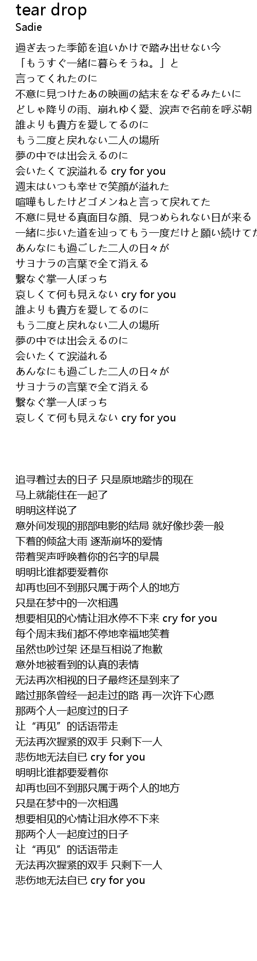 | Song | tear drop |