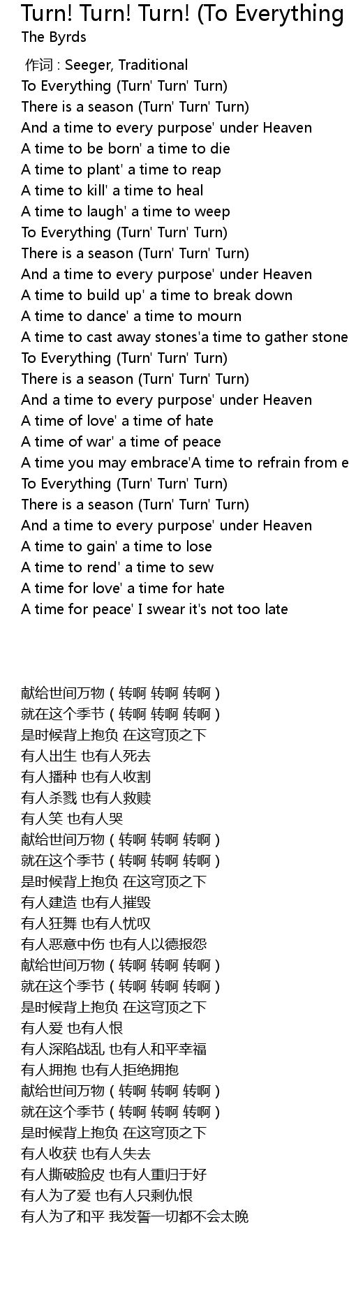 | [02:45.83] | There is a season Turn' Turn' Turn |