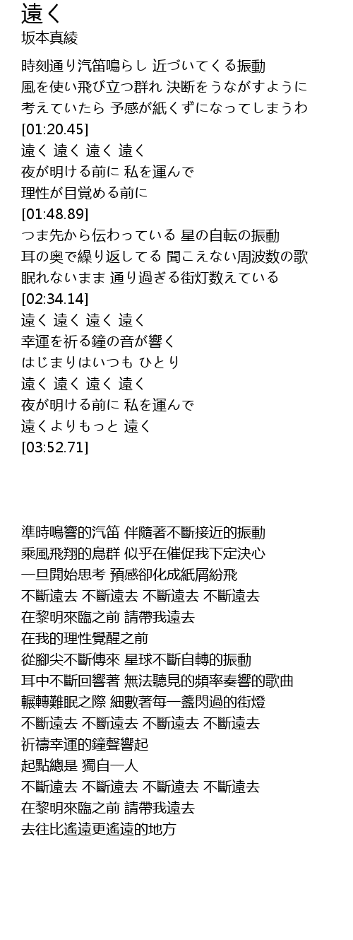 | [01:20.76] | 遠く 遠く 遠く 遠く |