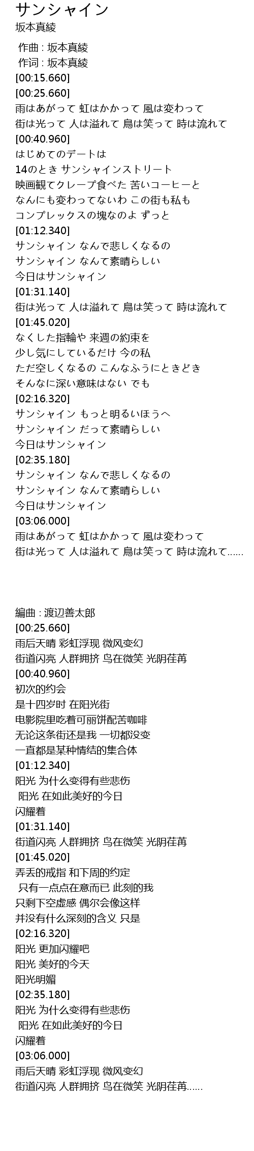 | [02:16.970] | サンシャイン もっと明るいほうへ |