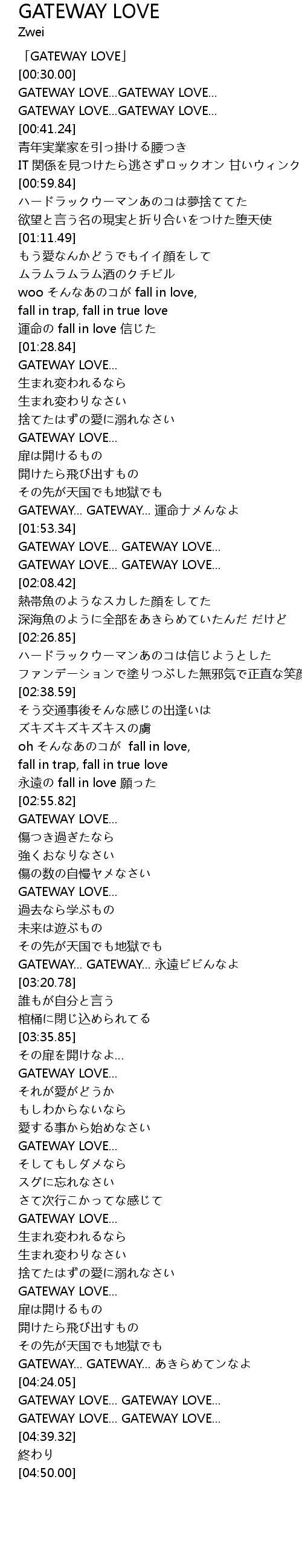 | [03:59.75] | GATEWAY LOVE... |